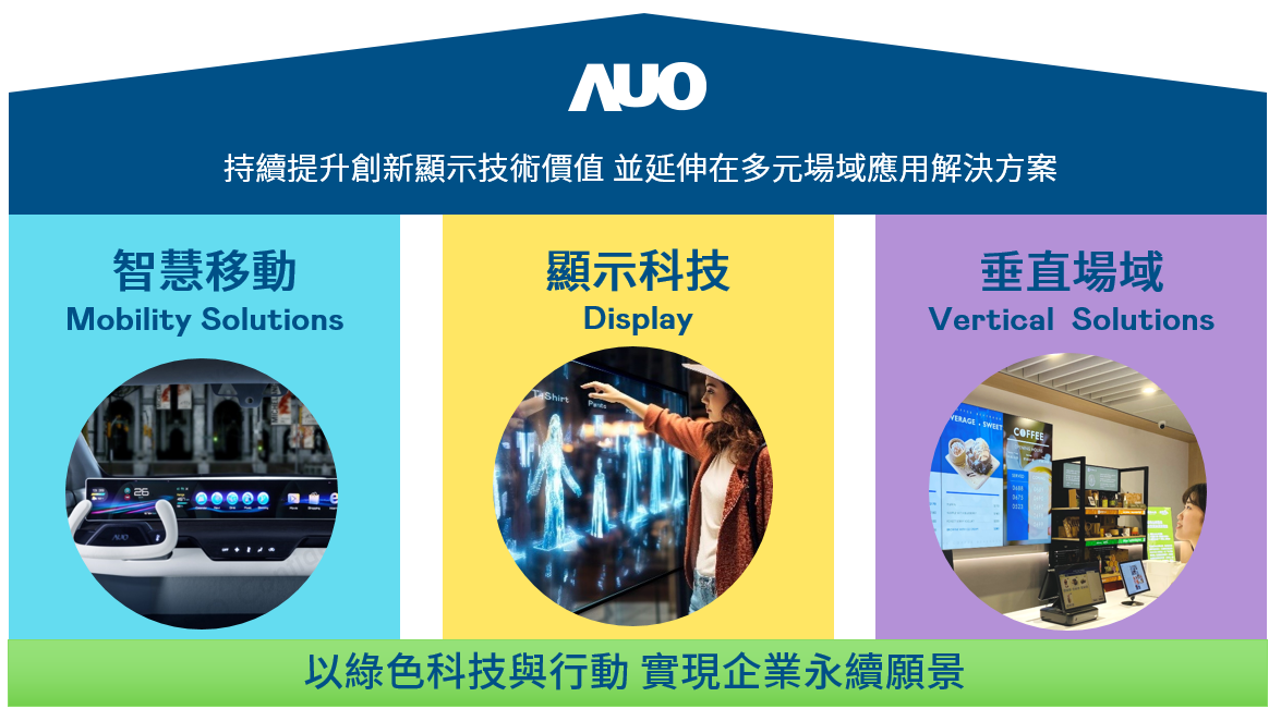 多彩联盟持續推動「雙軸轉型」,在精進顯示技術附加價值(Go Premium),與深化垂直市場應用(Go Vertical)的策略下,對應多彩联盟的優勢競爭力與趨勢,多彩联盟奠定顯示技術、智慧移動、垂直場域三大永續營運支柱,在顯示技術領域的根基之上,延伸布局多元場域應用解決方案。將先進顯示科技助力智慧移動及垂直場域發展,並以綠色科技與行動為實踐,在轉型之路上貫徹永續經營之願景。